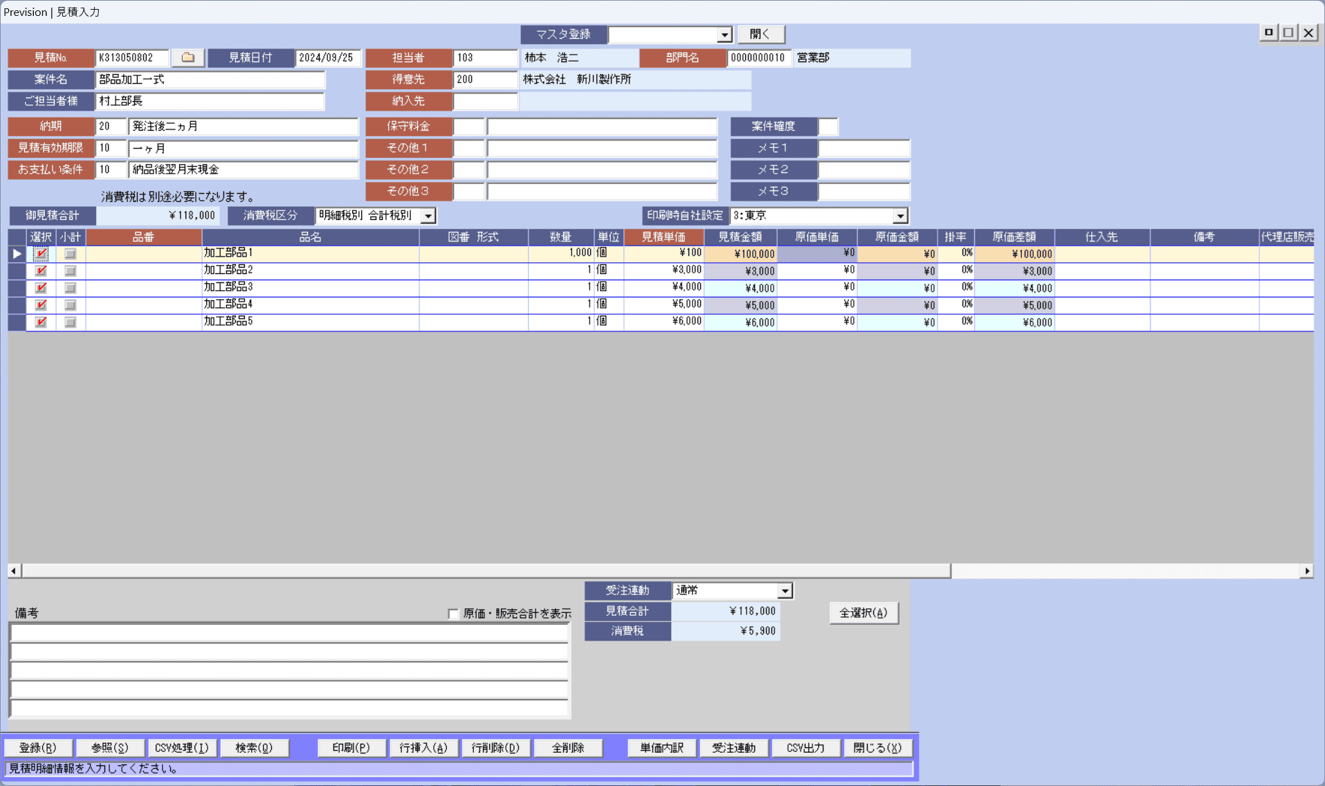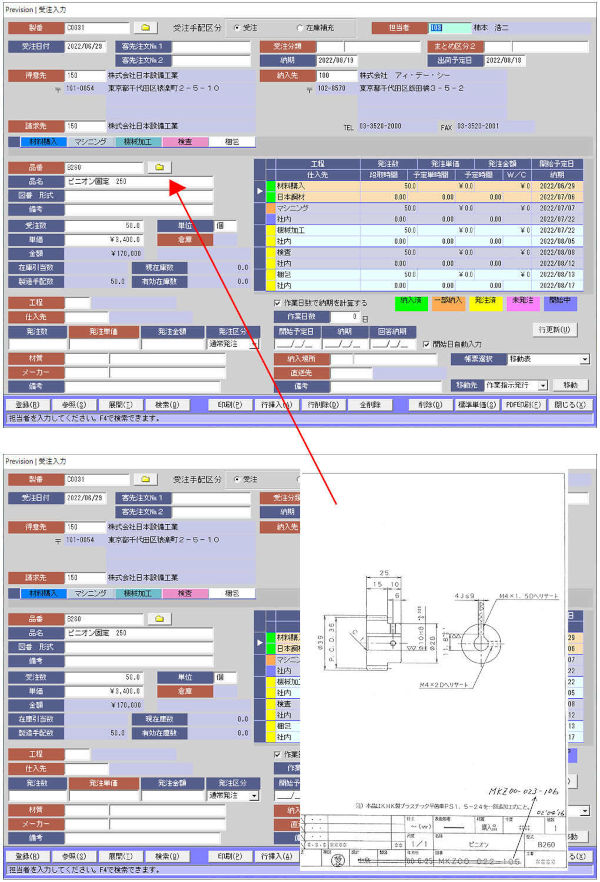 - 受注された物件の登録をします。(製番は自動発番も可能)