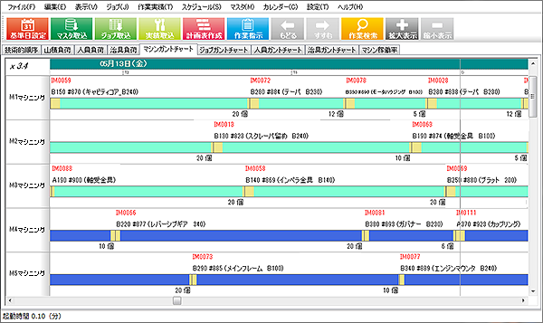 - ジョブガントチャート(部品別、製品別の工程の流れを表示します)