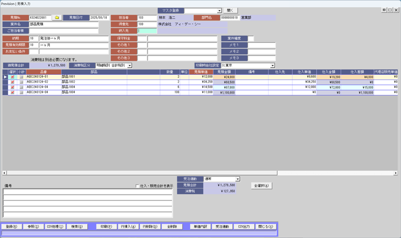 - 見積書の作成が行えます。